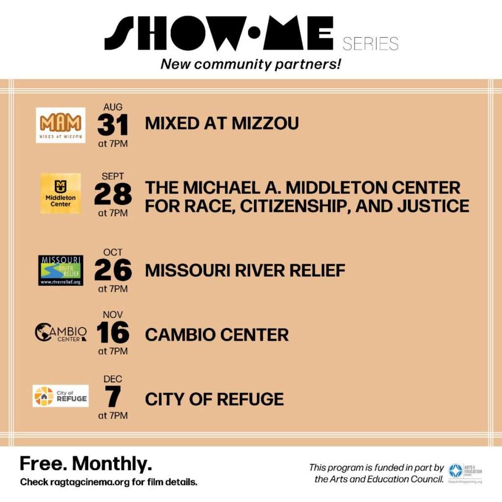 Two years ago, in our quest to assess our community’s perception of our organization, the Ragtag Film Society initiated conversations with a number of community members and organizations. We found that the best way to diversify our cinema audience is to not only represent different perspectives on screen but to also invite different groups to contribute and inform our programming. It was out of these discussions that RFS formalized its approach to community relations; launching the Show Me Series with our inaugural group of Community Partners: the Asian Affairs Center at the University of Missouri, Boone County Community Against Violence, the Center Project, Four Directions at the University of Missouri, and Rock the Community. This series has hosted conversations around how the history, culture, and politics of Pacific Rim nations contribute to Asian identities; how violence can affect the psyche of a community and the steps we can take to heal collectively; what it means to be queer in Mid-Missouri and the ways in which it can be celebrated; the history, heritage, and culture of Indigenous Peoples; and what outreach and community support of families and people of color looks like.